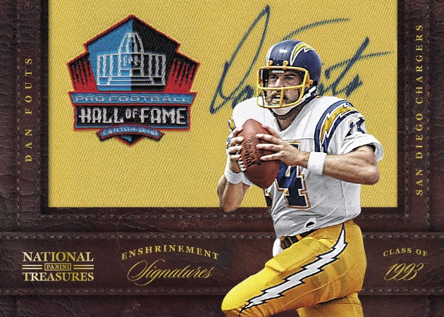 Piling onto failure in the rookie patch autos, we have further assurance that programs from lower end sets are making an unwelcome appearance AGAIN in NT. This has been a major problem for the last three or four years, and I honestly have no idea why the Dan Fouts card was created. Aside from the fact that I HATE HATE HATE these stupid manu-patch autos, the use of this type of card is both stupid and mis-representing of the theme of the overall product. These cards should be forever dismissed from all sets, but to have them in the biggest product on the calendar is just a piss poor idea. Super High End sets should be super unique, and should showcase the best of the best cards of the year, not the trash from other products.