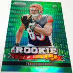2012 Prizm Trent Richardson Auto RC /99 – Check out how much of the card is obscured with needless and ugly design elements.