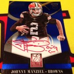 I am loving that Manziel is signing all his cards with the full sig, instead of the shortened sig we were seeing on some of the other stuff. Although I am not a huge fan of his, his cards will come into the season as the top guy in the class. The clear acetate cards from Elite are really looking nice this year, as are a lot of what we are seeing in Prestige and other stuff.