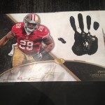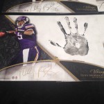 If you arent familiar with the hand stamp cards, they are oversized cards where the rookies will put on gloves to add a bit extra to the autograph they are signing. To see the new design being completed makes it clear that 2014’s version will far exceed that of any other example. They look great with the larger white area for the rookies to sign, and the gold pen really makes the signatures that much more good looking.
