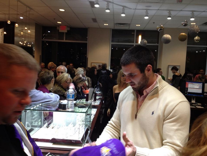 When I came home from San Antonio to Minnesota to visit family for thanksgiving, I was notified by my father that we were going to have the opportunity to go to a “customer appreciation” night at Continental Diamond (website here), a jewelry store which my family has been long time friends with the employees and owners. Many other people had gotten a similar invitation, which included the chance to get autographs and pictures with a few of the Vikings players. My parents were able to go last year, when Christian Ponder and Chad Greenway were there signing for the patrons and friends of the store. This year, as tends to happen, the event was bigger and better than ever.