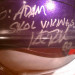 Antoine Winfield, the anchor of the Vikings secondary was next, but I was unable to secure anything for him to sign in time for the event. The photos were just their team shot, which I wasn’t too keen on getting, so I just went over and said hi. By this time, everyone had figured out the pattern, and the lines were starting to form before the players sat down. I had a list of players that were going to be there prior to showing up, and was able to prepare a bit more than the other guests. I also had a feeling that there might be a few surprises in store, and brought some extra items just in case.