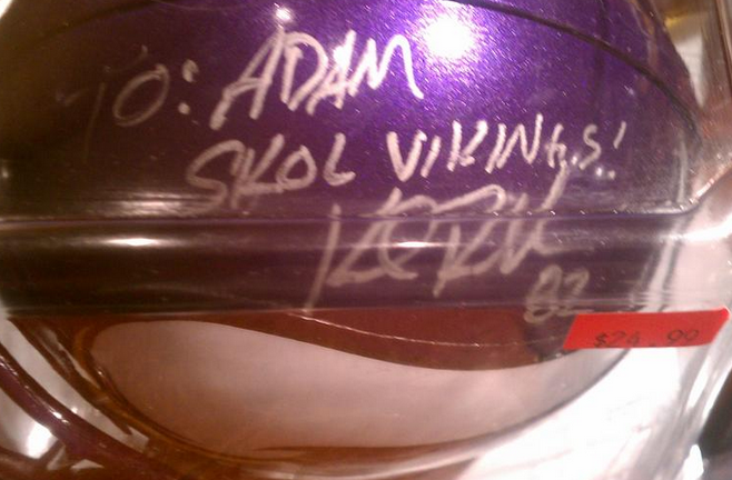 At the same time, Chad Greenway started to sit down and sign across the store, and again, I was able to beat the line because everyone was still waiting for Kyle Rudolph. When I say line, there were about 150 people who were in the store, 75 of which cared about these Vikings appearances. The other people’s focus was more on taking pictures than getting autographs, so the players were happy to sign A LOT when needed.