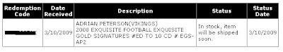 A few readers sent in this auction link of a seller who wanted to prove that a recently sold Peterson chest logo SPA Patch Auto was fake. See, of all the patches to fake, I would expect that this one would be the least likely to top the list due to the shear scope of the cost of the card. Then again, we have seen Exquisite Peterson fakes, and other fakes of this SPA card, so the lesson is this: