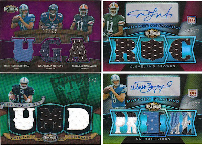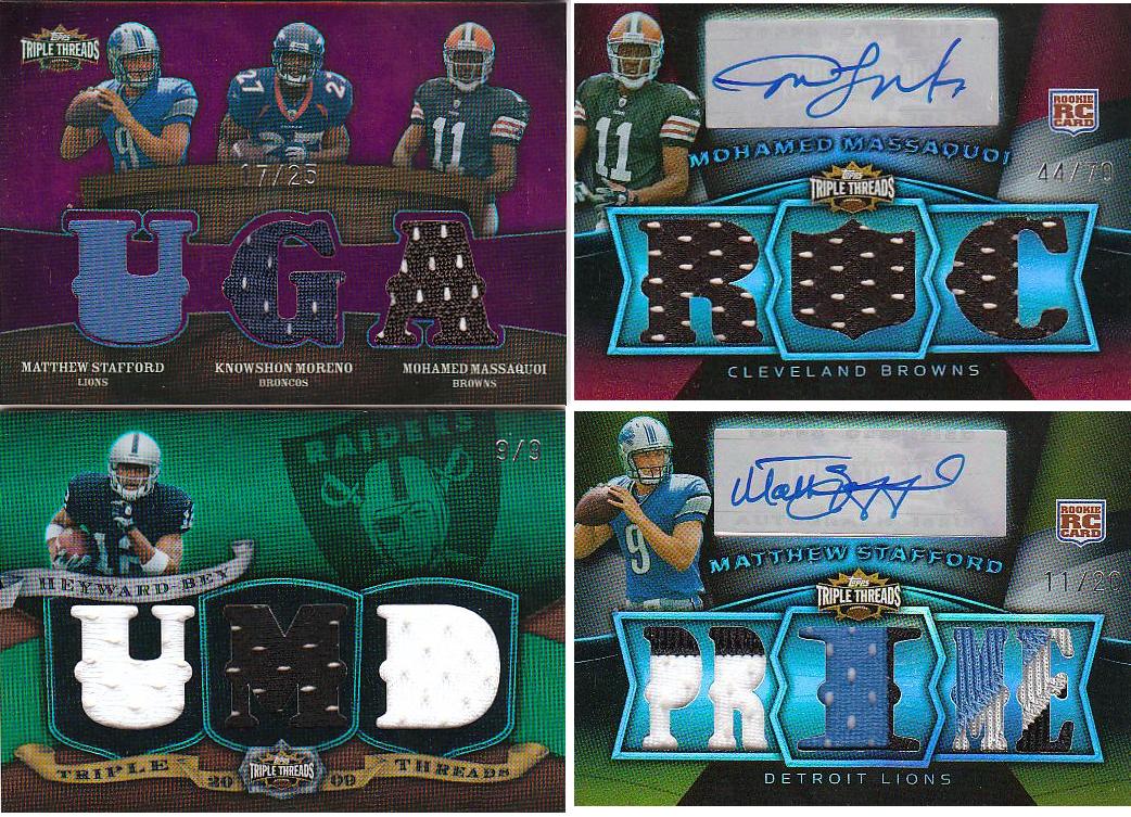 In terms of normal Triple Threads ideals, the Stafford is a good pull, but even in this case, I wouldnt touch it with someone else’s ten foot pole. As I said before, spelling out “Prime” in diecut windows is absolutely the dumbest thing I have ever seen. When the “I” is the same size as the player picture, and the card looks like that, I cant believe people actually like this product. The other cards are the typical two dollar hits you usually get from a box, and overall, Shane took a bath on these boxes.
