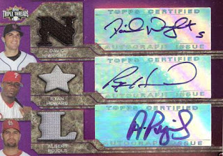 Reader CT sent me this thread over on Collectors Universe that brings about a troubling situation with Topps Triple Threads. When you look at these cards, its pretty simple to see that something is up with Pujols’ sticker. Im guessing that either the seller has removed the real stickers and just used the trick from before to fake the autos, or Topps is being had, and just didnt care to run QC on the stickers that Pujols “signed.”