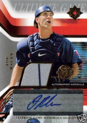 A few days ago I posted about Joe Mauer and his recent explosion, and how I didnt want to sell any of my prized possessions just because he was hot at the moment. Well, I found two cards that I coundnt give two shits about, that are actually worth quite a bit from recent auction sales, so I thought I would give it a try.