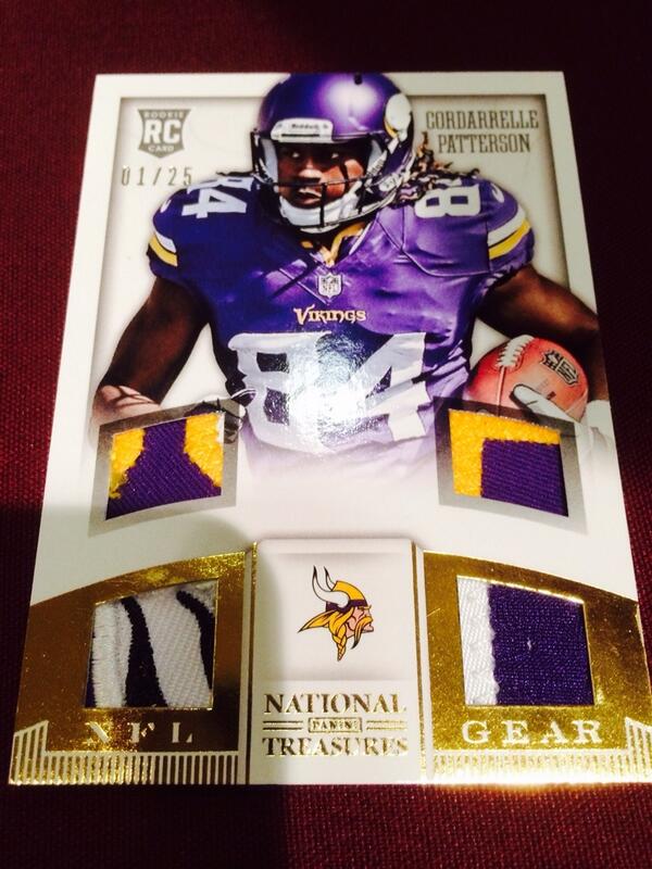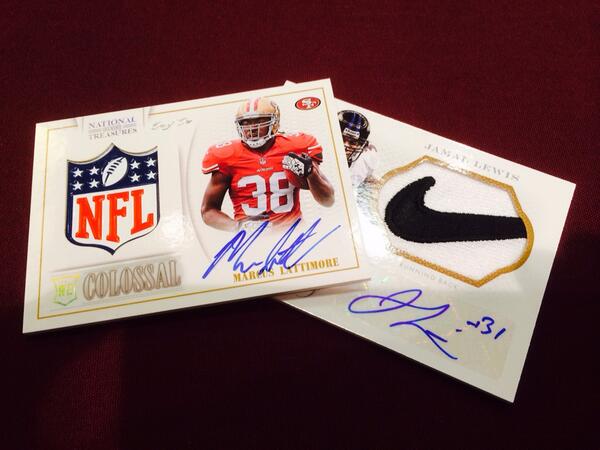 One of the ONLY positive things to come out of the 2014 Industry Summit is the amount of boxes that are going to be broken. Kind of interesting that an event made for networking becomes about breaking wax, but I digress. Last night, a few cases of the brand new 2013 National Treasures Football were broken, and as expected the cards look pretty damn good. I was beyond excited to see how it turned out, and I was not disappointed.