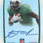 With 2013 Bowman, hitting store shelves this Wednesday, they opted to forgo the NFL element all together in favor of chrome technology and on card autographs. Although I think the generic jerseys we see on the cards arent ideal, its a lot better than poorly retouched NFL jerseys and sticker autos like we are seeing in 2013 Score.