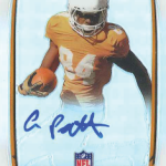 I don’t understand why this product exists. From a singles perspective it looks like an ugly love child of Chrome and Platinum. I guess if you want a college style jersey with a Chrome look and you hate logos this is the product for you. Is this meant to compete with UD’s college offerings? Notre Dame fans are the clear winners with these generic products.