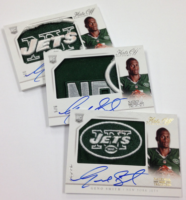 Let me start this off as saying I am all for on card autos in every single product, and National Treasures is really looking good in that respect. It was already a stellar product last year, which speaks to the product’s improvement. With the exception of the ridiculous “Hats Off” set, every card they have previewed looks pretty awesome. Now that we are getting some of the completed cards as part of the previews, I think everyone is going to be quite excited at the final product.