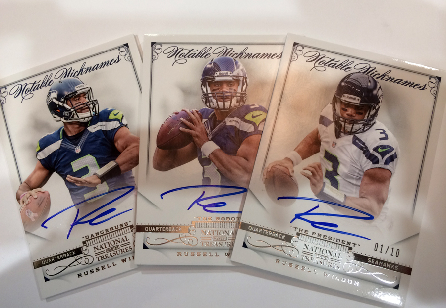I love this idea. LOVE LOVE LOVE this idea. Its been around for a while, but not in football as much. Im not crazy about the fact that these cards are vertical instead of horizontal, because you see what happens when someone really writes out a cool inscription. However, when you see that Russell Wilson didn’t sign any inscription, Im curious to see what the rest of the cards will look like.