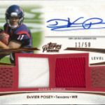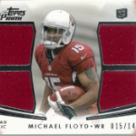 I also oddly pulled two jersey numbered cards, one a quad parallel auto bronze parallel of Devier Posey numbered 11/50, and a Michael Floyd quad relic numbered 15/146. I couldnt care less that these cards are numbered to their jersey numbers, but others sure do think its important. Maybe it will turn into some extra dough.