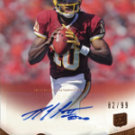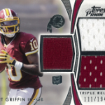 With how great RGIII has been playing as of late, I cant complain with pulling so many of his cards. I managed to come away with a bronze auto /99, a triple jersey /194 and a quad with him, Luck, Blackmon and Richardson out of 500. The autograph is a parallel version and has been selling really well so far, not to mention a sweet looking card. The base cards are some of my favorite autographs this year, and I am going to hang onto this RGIII just so I have at least one. Its also crazy to see how much his jersey cards are selling for
