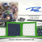 The last card worth mentioning is a Russell Wilson quad relic auto /250, which would have been much better had I pulled it three weeks ago. Regardless, its still a pretty cool card, and I will be hanging onto it until he has a game worth selling it after. People like Wilson a lot, so this could have ended up a lot worse. For a guy playing like he is, there is some nice money to get out of this one.